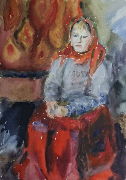 "Портрет Юли Тайбери", бум. акв., 60х40 см, 2024 г