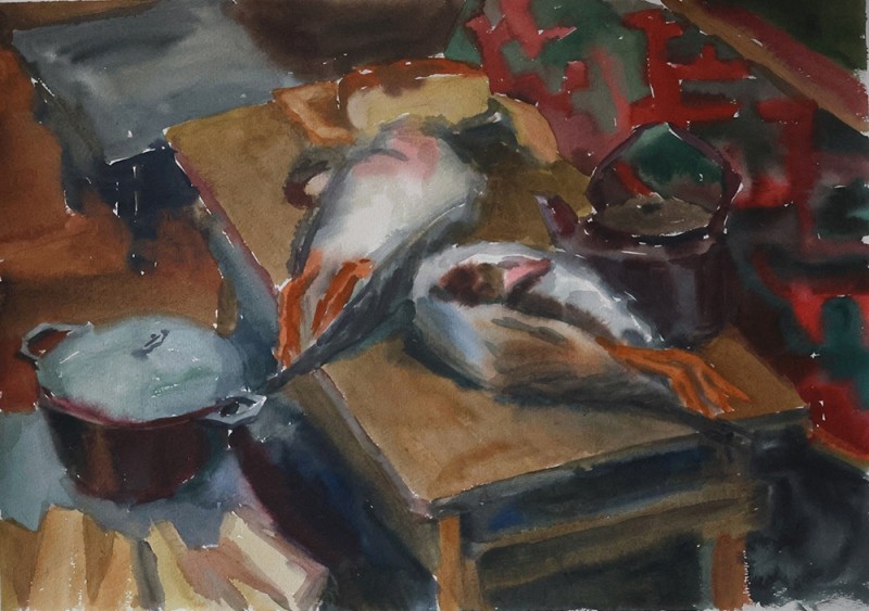 "Будет вкусный ужин", бум. акв., 40х60 см, 2024 г