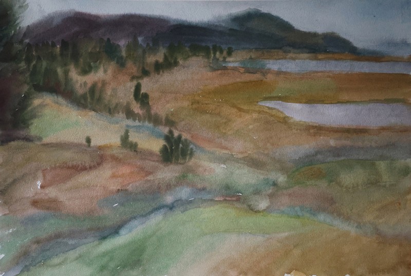 "Гора на Щучьем озере", бум. акв., 40х60 см, 2024 г